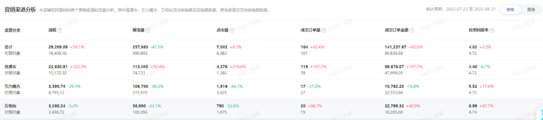 “在今年上半年,推薦流量增長趨勢明顯,結合店鋪競品流量分析以及店鋪自身情況,我們在接手后面調整店鋪流量結構,在保持原有的搜索流量不變的情況下,細分推薦板塊流量計劃,為店鋪帶來新的品類機會?!?