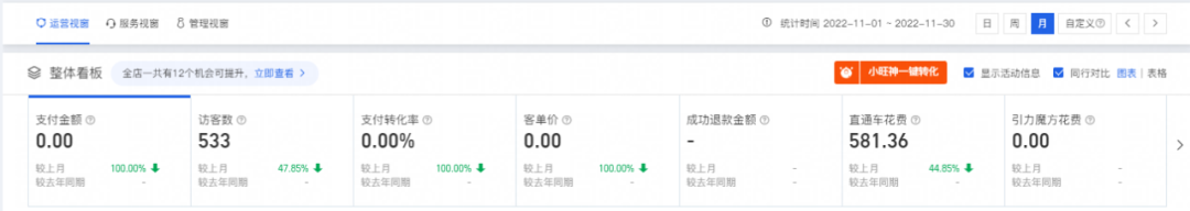 2.店鋪新店沒有訪客,流量結(jié)構(gòu)不合理,主要付費廣告流量,獲客成本高;