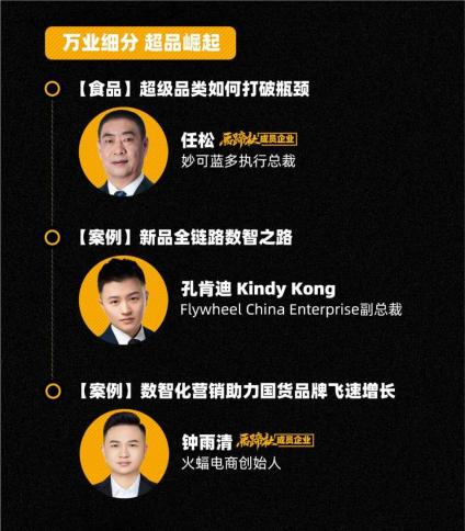 具體而言,在“萬店連鎖·零售復(fù)興”維度,面對電商換擋期,如何洞察消費(fèi)趨勢?如何打爆細(xì)分賽道超級單品?億邦動(dòng)力總裁賈鵬雷、火蝠電商CEO鐘雨清等人將發(fā)表演講。圍繞數(shù)智化營銷助力國貨品牌飛速增長、超級品類如何打破瓶頸、新品全鏈路數(shù)智之路等熱點(diǎn)話題,共同探尋新零售下各品類的崛起之路。