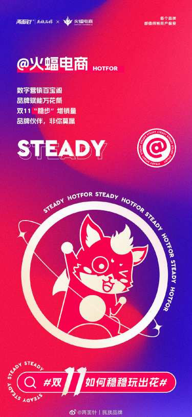 而火蝠BOSS鐘雨清,不僅會在11月10日空降兩面針官方淘寶直播間,而且11月11日還會在火蝠直播間引爆雙十一大促之夜。除了萬千豪禮相送,鐘雨清還將現場解讀火蝠電商“數智驅動百分服務,助力老字號煥新出擊”的營銷打法和本屆雙十一的“穩戰”內核。面對日顯冷清的雙十一,品牌商家要如何講出新故事,消費者又要如何優中選優呢?敬請關注火蝠穩戰雙十一營銷活動,穩穩出擊,共贏雙十一。