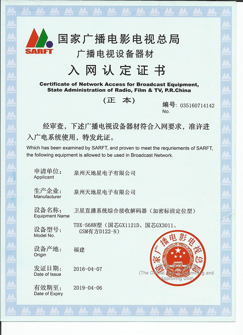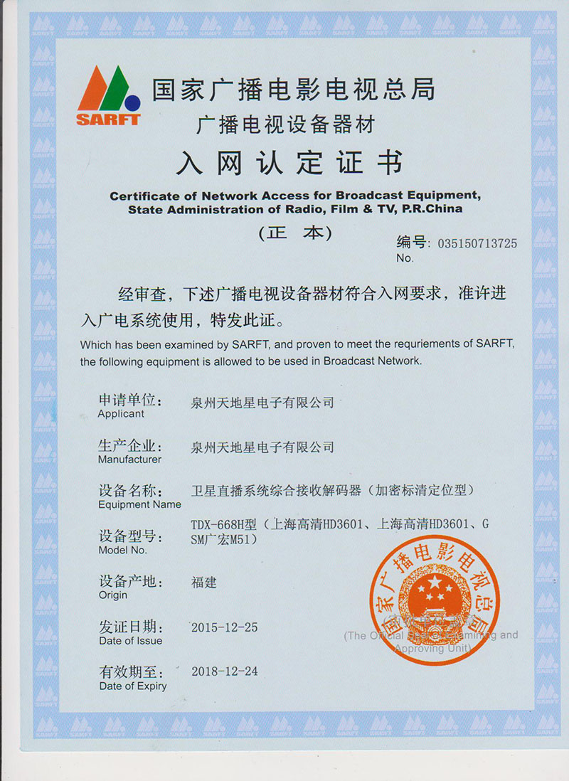 廣播電視設備入網證2
