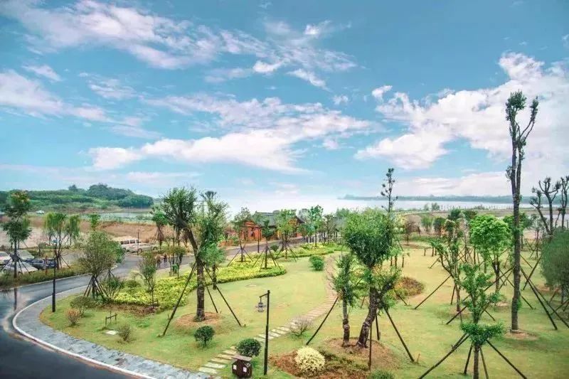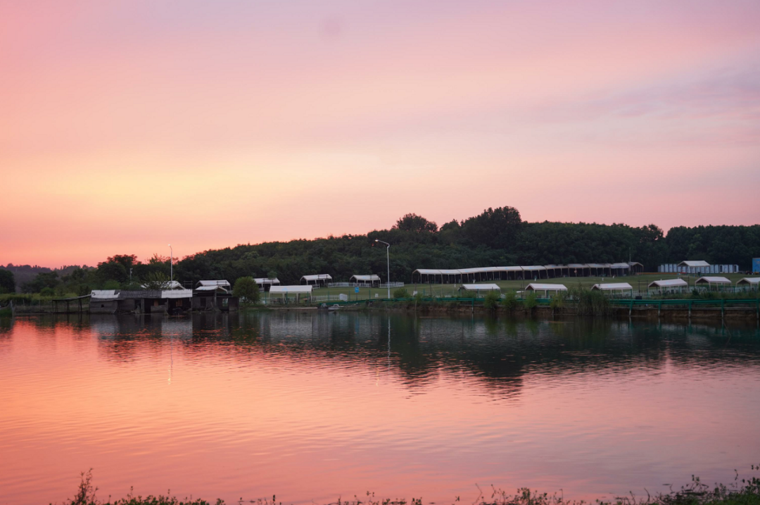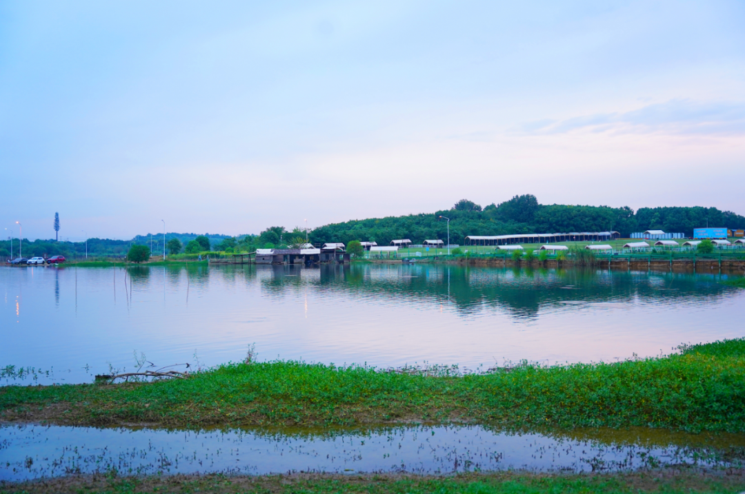 “采菊東籬下,悠然見南山”,湖水、微山、果園、樹木、草、風(fēng)、花、夕陽、飛鳥、鳴蟲、竹籬、小木屋.……還有當(dāng)日偶遇的像棉花糖一樣飄蕩的云朵和靜謐的藍(lán)天,仿佛就是陶淵明筆下的夢想境地。